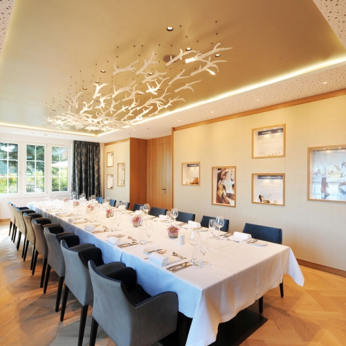 Ergänzt wird das kulinarische Angebot mit einer handverlesenen Weinkarte, zusammengestellt aus einem breiten Angebot an Schweizer Weinen und ausgesuchten edlen Tropfen aus Europa.
